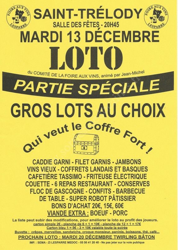 - Lieu : Salle des Fêtes de Saint-Trélody