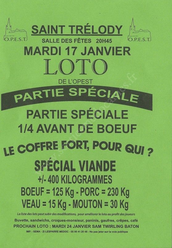 - Lieu : Salle des Fêtes de Saint-Trélody