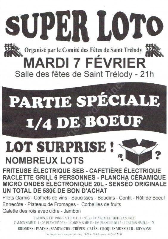 Loto organisé par le Comité des Fêtes de Saint-Trélody.