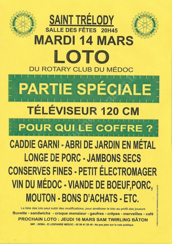 Loto organisé par le Rotary Club du Médoc le 14 mars 2017.