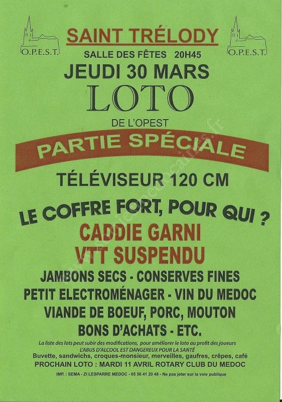 - Lieu : Salle des Fêtes de Saint-Trélody