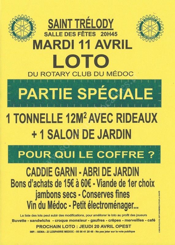 Loto organisé par le Rotary Club du Médoc le 11 avril 2017.
