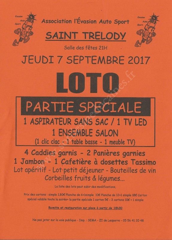 - Lieu : Salle des Fêtes de Saint-Trélody