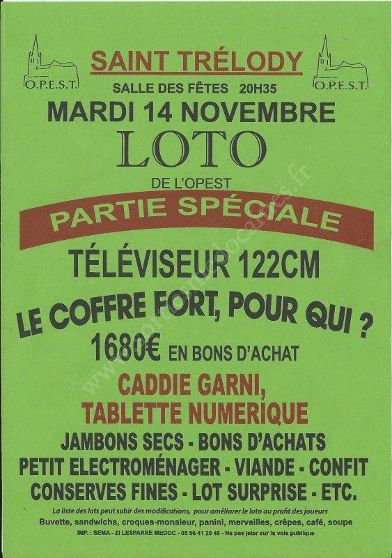 - Lieu : Salle des Fêtes de Saint-Trélody