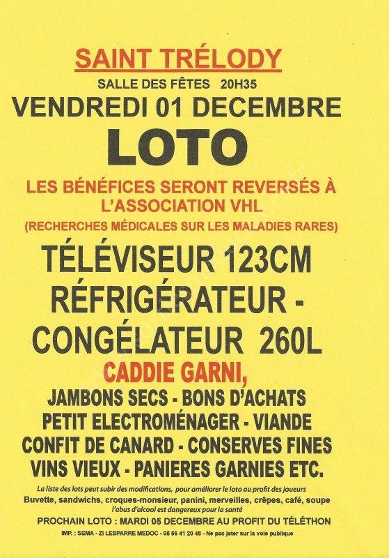 Loto dont les bénéfices reversés à l'association VHL (recherches médicales sur les maladies rares)