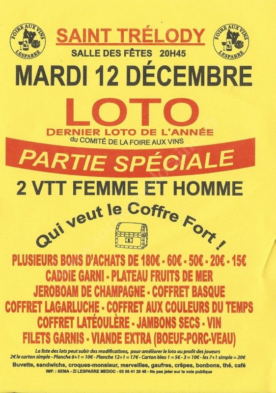 - Lieu : Salle des Fêtes de Saint-Trélody