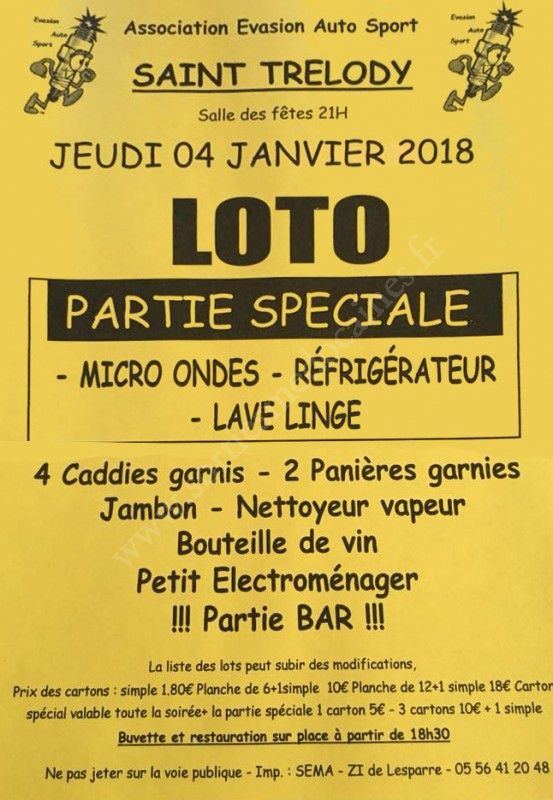 - Lieu : Salle des Fêtes de Saint-Trélody