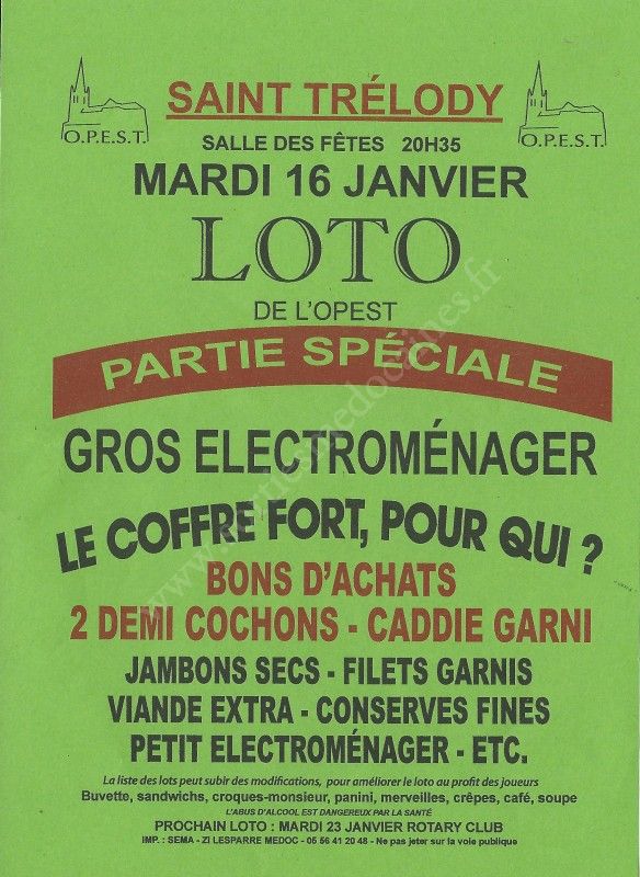 - Lieu : Salle des Fêtes de Saint-Trélody
