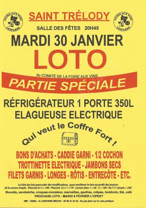 La liste des lots peut subir des modifications, pour améliorer le loto au profit des joueurs.