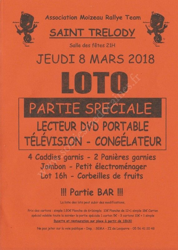 - Lieu : Salle des Fêtes de Saint-Trélody