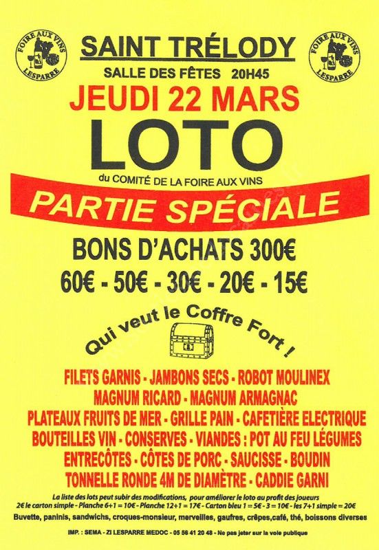 La liste des lots peut subir des modifications, pour améliorer le loto au profit des joueurs.