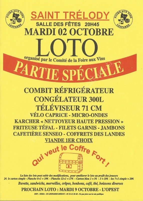 La liste des lots peut subir des modifications, pour améliorer le loto au profit des joueurs.