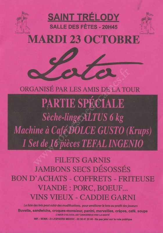 - Lieu : Salle des Fêtes de Saint-Trélody
