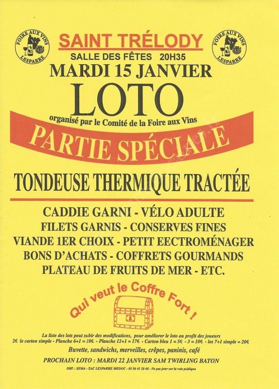 Loto du Comité de la Foire aux Vins.