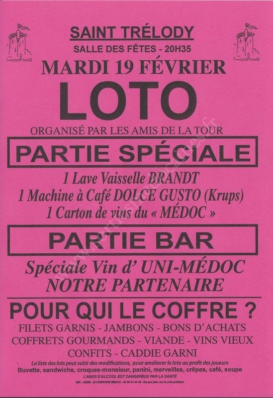 - Lieu : Salle des Fêtes de Saint-Trélody