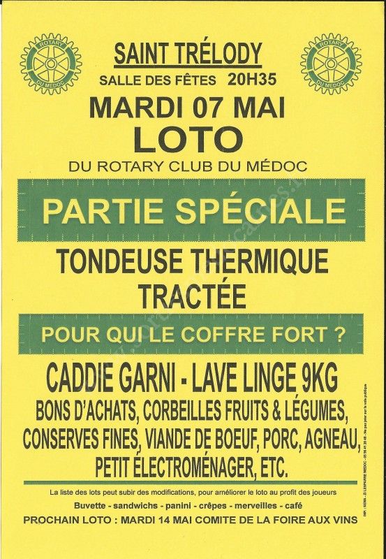 Loto organisé par le Rotary Club du Médoc le 7 mai 2019.