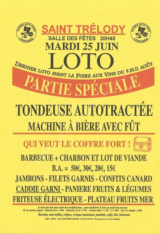 Loto du Comité de la Foire aux Vins.
