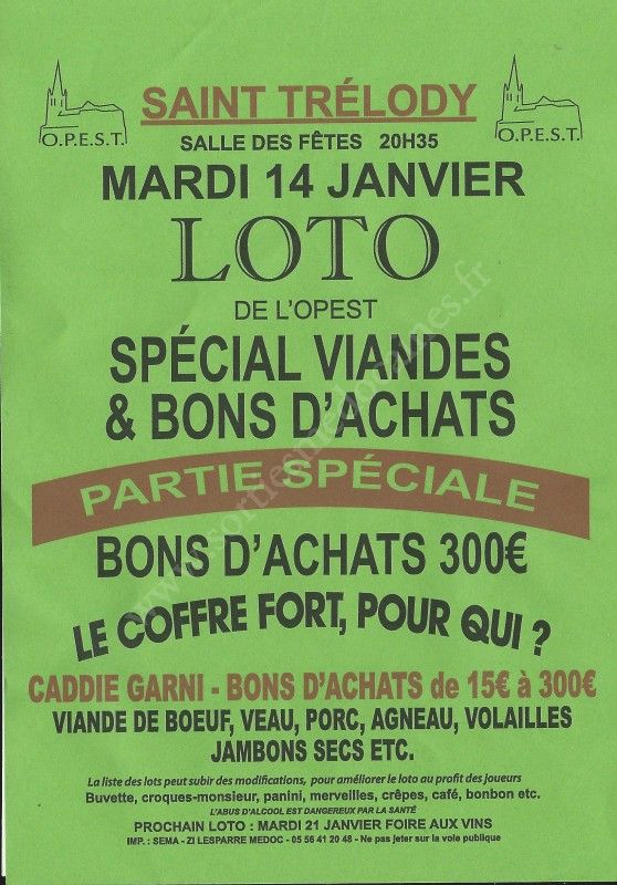 - Lieu : Salle des Fêtes de Saint-Trélody