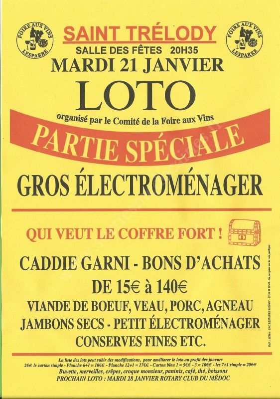 Loto du Comité de la Foire aux Vins.