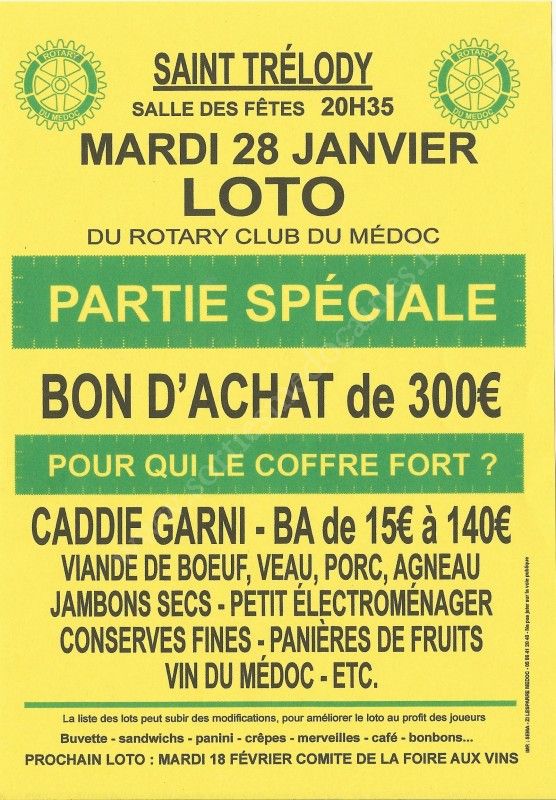 Loto organisé par le Rotary Club du Médoc le 28 janvier 2020.