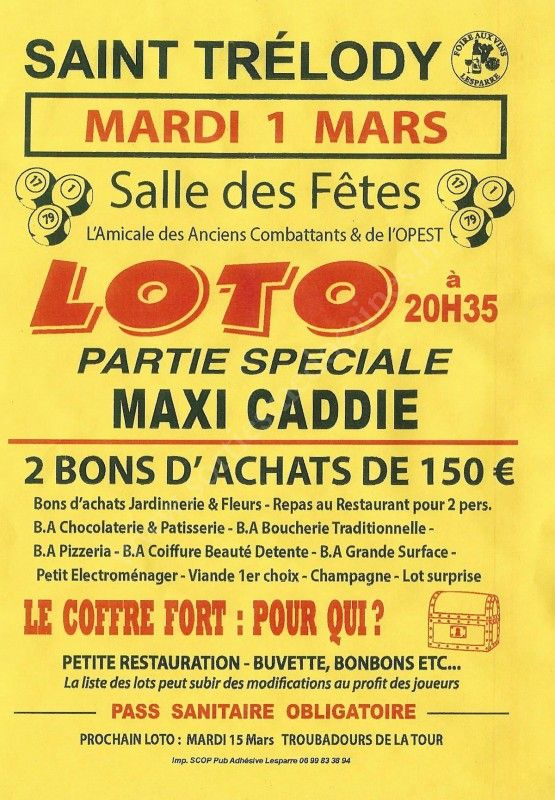 - Lieu : Salle des Fêtes de Saint-Trélody