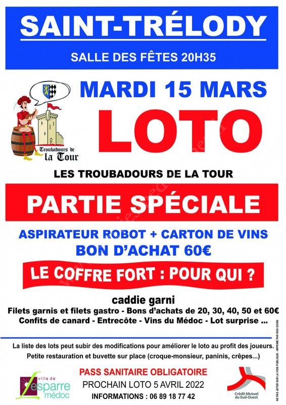 - Lieu : Salle des Fêtes de Saint-Trélody