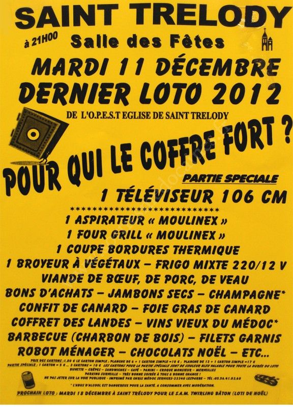 Dernier loto de l'année 2012 organisé par l'OPEST Eglise Saint Trélody.