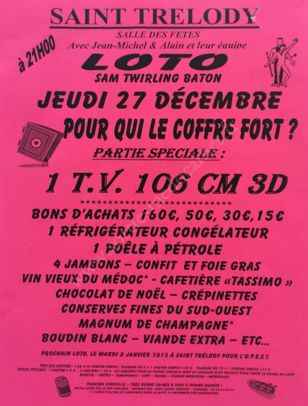 - Lieu : Salle des Fêtes de St-Trélody