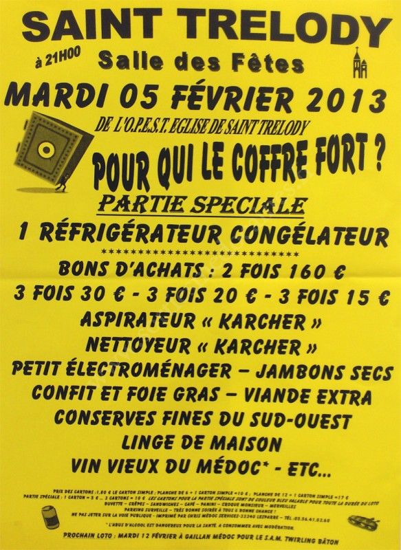 - Lieu : Salle des fêtes (St Trélody)