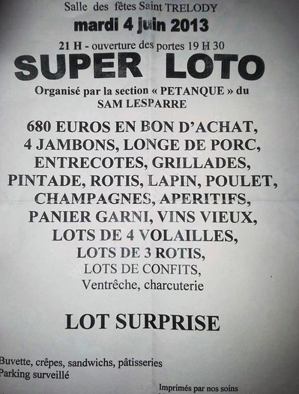 - Lieu : Salle des Fêtes de St-Trélody