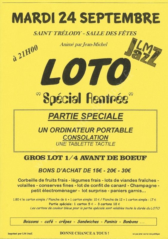 Loto "Spécial Rentrée" organisé par LM Jazz et animé par Jean-Michel.