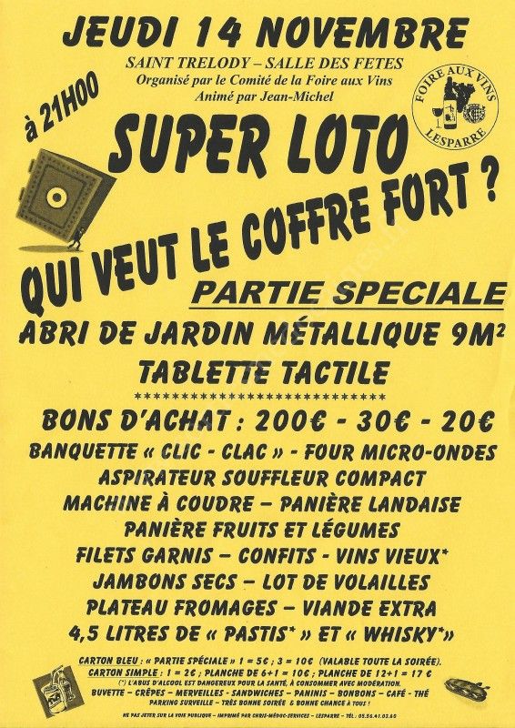 - Lieu : Salle des Fêtes de St-Trélody
