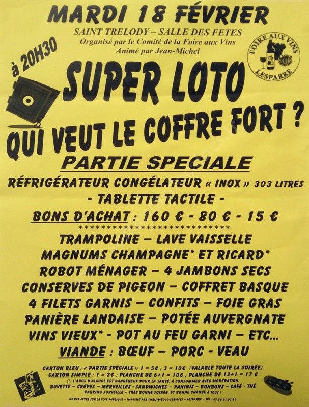 - Lieu : Salle des Fêtes de Saint-Trélody
