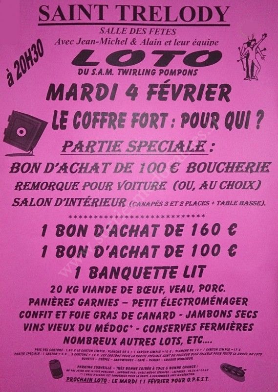 - Lieu : Salle des Fêtes de Saint-Trélody