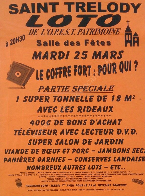 - Lieu : Salle des Fêtes de Saint-Trélody