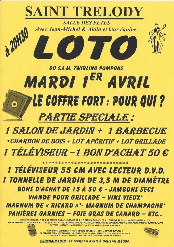 - Lieu : Salle des Fêtes de Saint-Trélody