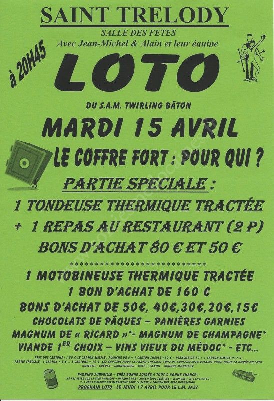 - Lieu : Salle des Fêtes de Saint-Trélody