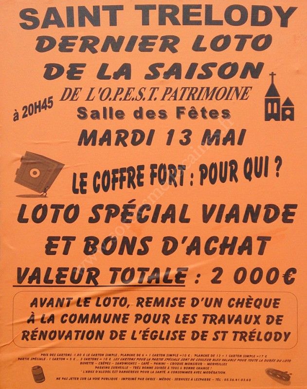 Organisé par l'O.P.E.S.T. Patrimoine. Dernier loto de la saison.