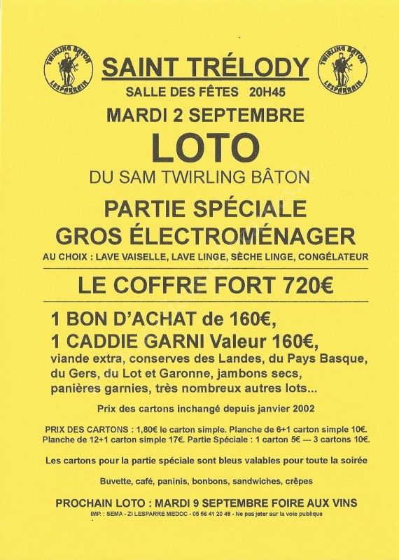 - Lieu : Salle des Fêtes de Saint-Trélody