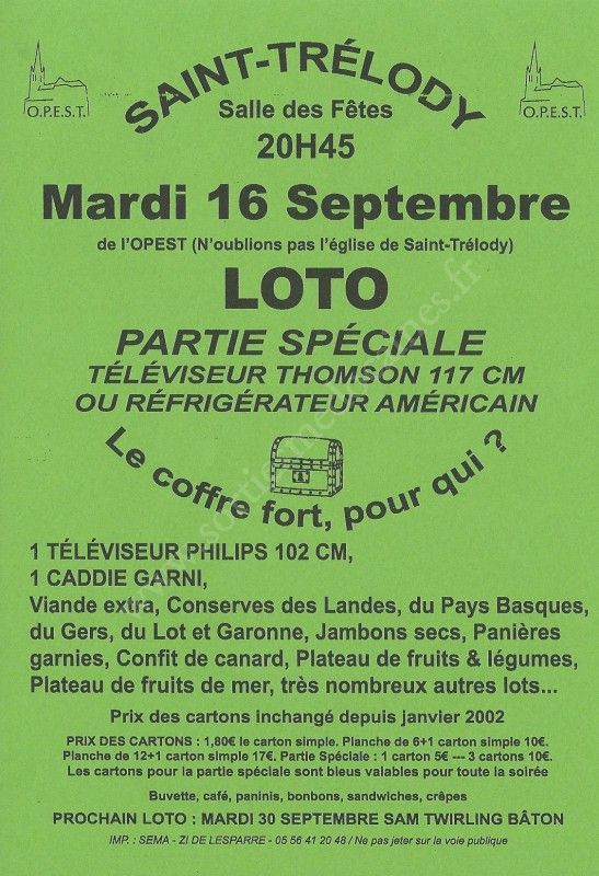 - Lieu : Salle des Fêtes de Saint-Trélody