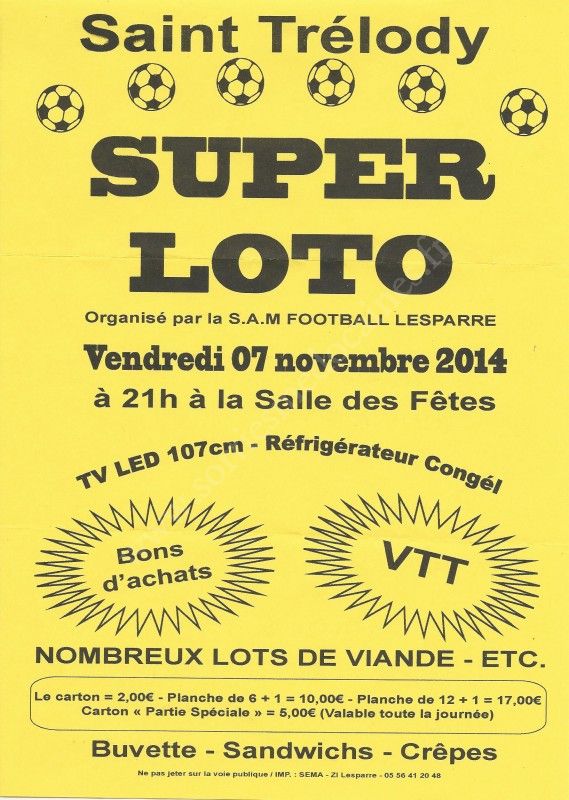 - Lieu : Salle des Fêtes de Saint-Trélody