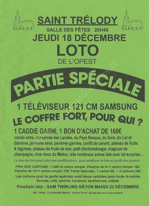 - Lieu : Salle des Fêtes de Saint-Trélody