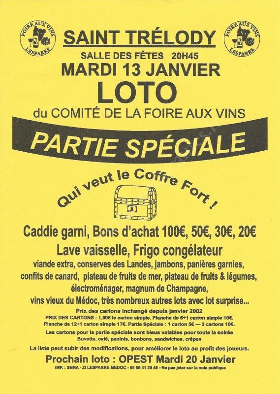 - Lieu : Salle des Fêtes de Saint-Trélody