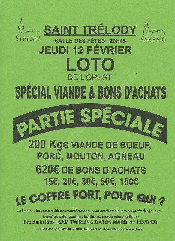 - Lieu : Salle des Fêtes de Saint-Trélody
