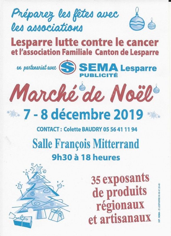 L'association LLCC (Lesparre Lutte Contre le Cancer) organise comme tous les ans son marché de Noël qui aura lieu cette année les 7 et 8 décembre.
