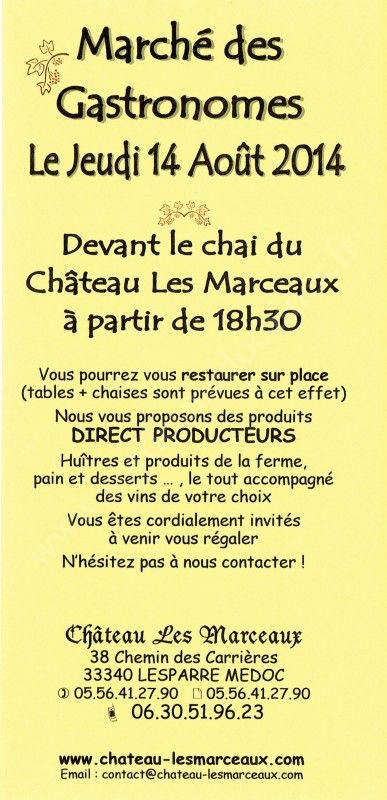 Renseignements : Château Les Marceaux / 05 56 41 27 90 ou 06 01 88 94 06