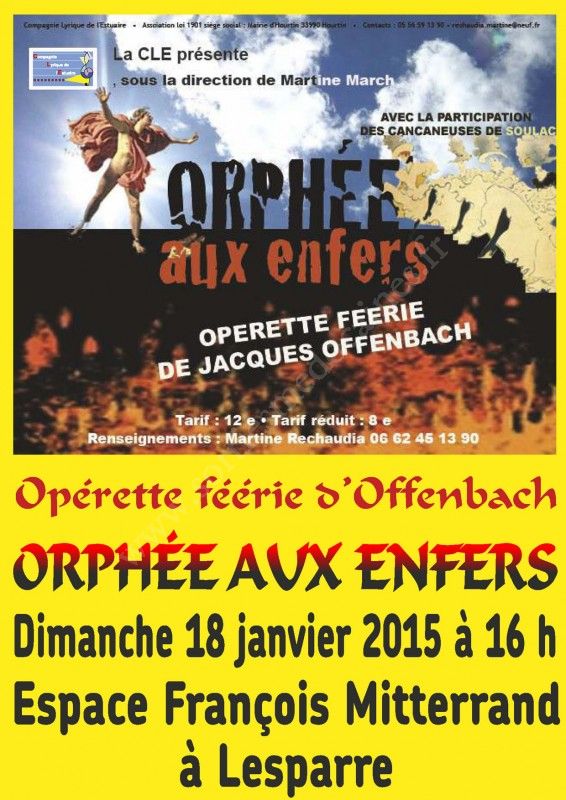 La CLE, sous la direction de Martine March, avec la participation des cancaneuses de Soulac présentent l'opérette féérie de Jacques Offenbach : "Orphée aux Enfers".