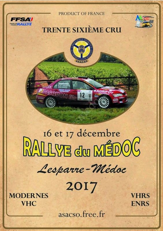 Le trente sixième cru du Rallye du Médoc aura lieu les 16 et 17 décembre 2017.