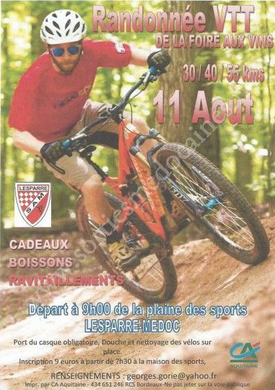- Trois parcours balisés, 30, 40 et 55 km avec deux ravitaillements sur le 55 km.(casque obligatoire)