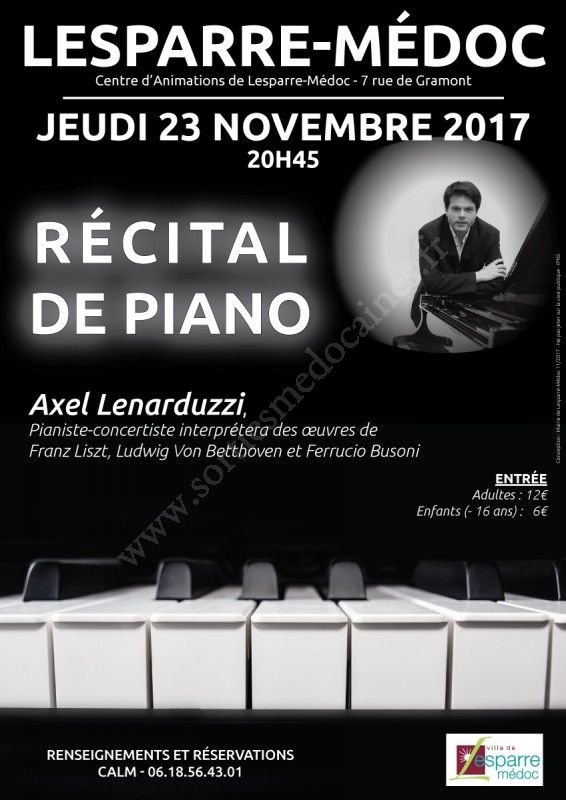 Dans le cadre de sa saison culturelle 2017-2018, le Centre d’Animations de Lesparre-Médoc vous invite au récital de piano, d'Axel Lenarduzzi.